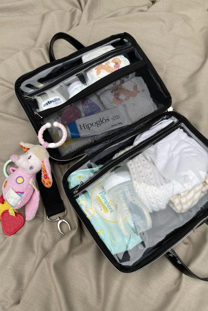 - Se abre por el centro.Varios bolsillos para organizar los cosmeticos o la ropa y accesorio para tu bebe